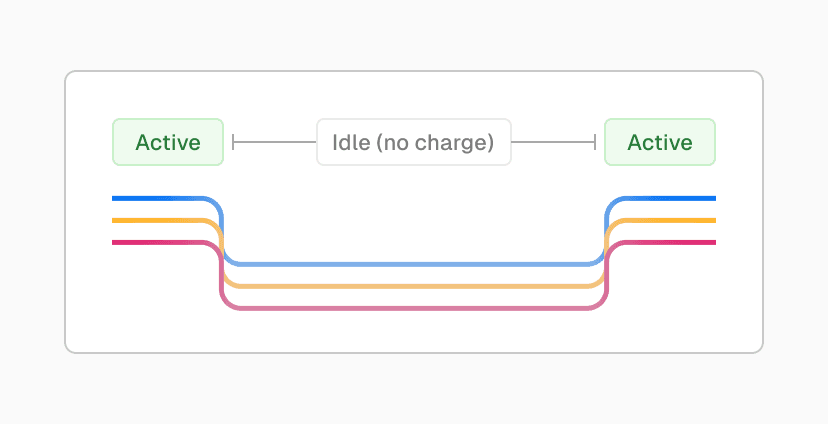 await sandbox.stop();Fluid compute automatically handles the unpredictable, long-running compute patterns that agents create. It’s easy to ignore compute when agents are processing text, but when usage scales and you add data-heavy workloads for files, images, and video, cost becomes an issue quickly. Fluid compute automatically scales up and down based on demand, and you're only charged for compute time, keeping costs low and predictable.