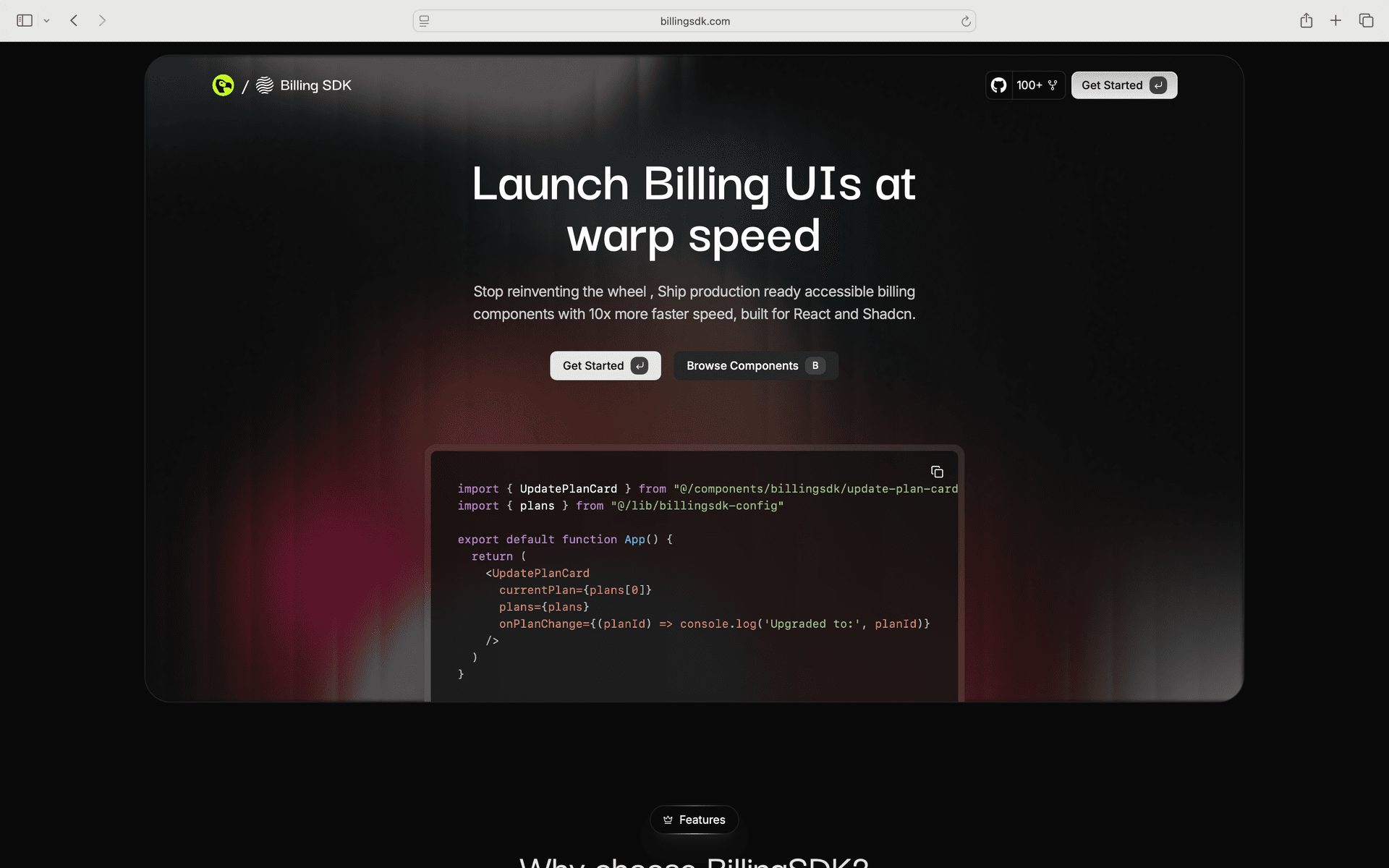 Billing SDK by Dodo Payments is an open-source toolkit that helps SaaS and AI developers ship subscriptions, usage-based billing, and one-time payments in minutes—without backend complexity or compliance headaches. It offers full-stack scaffolding, production-ready UI components, and provider-flexible adapters, and has grown into a global community with thousands of users, 200+ GitHub stars, and hundreds of contributions.