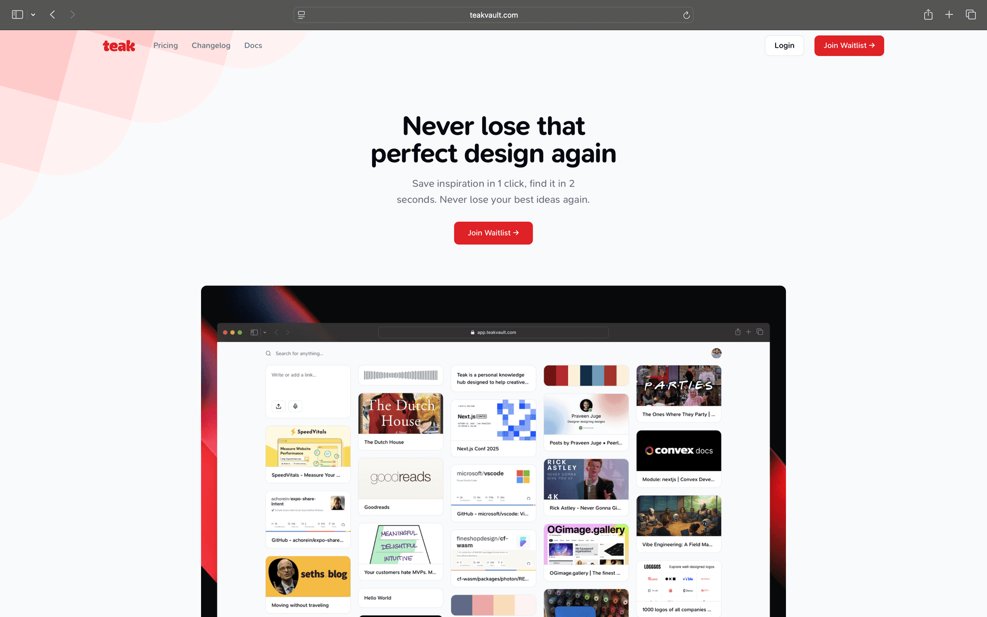 Teak is an open, privacy-friendly tool that lets designers capture and preserve visual inspiration before it disappears, built for creatives who care about how their ideas look and feel. It’s community-driven, easy to build on, and designed to support visual thinkers, designers, and developers in keeping their inspiration alive.