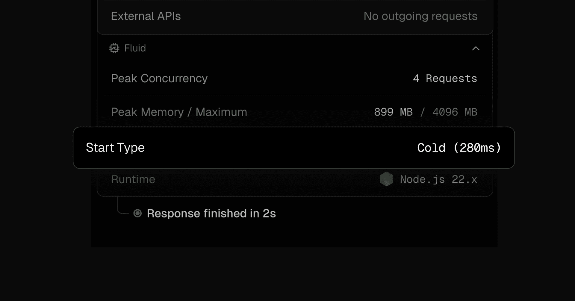 For any request involving a Vercel Function invocation, you can now view the function start type in the right hand details panel of Runtime Logs.