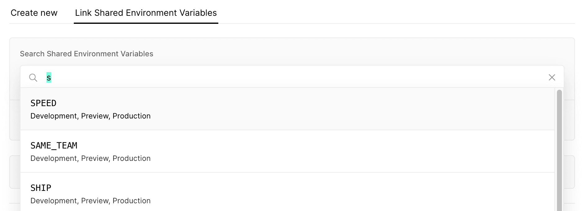 - Select one or more Shared Environment Variables using the search box: