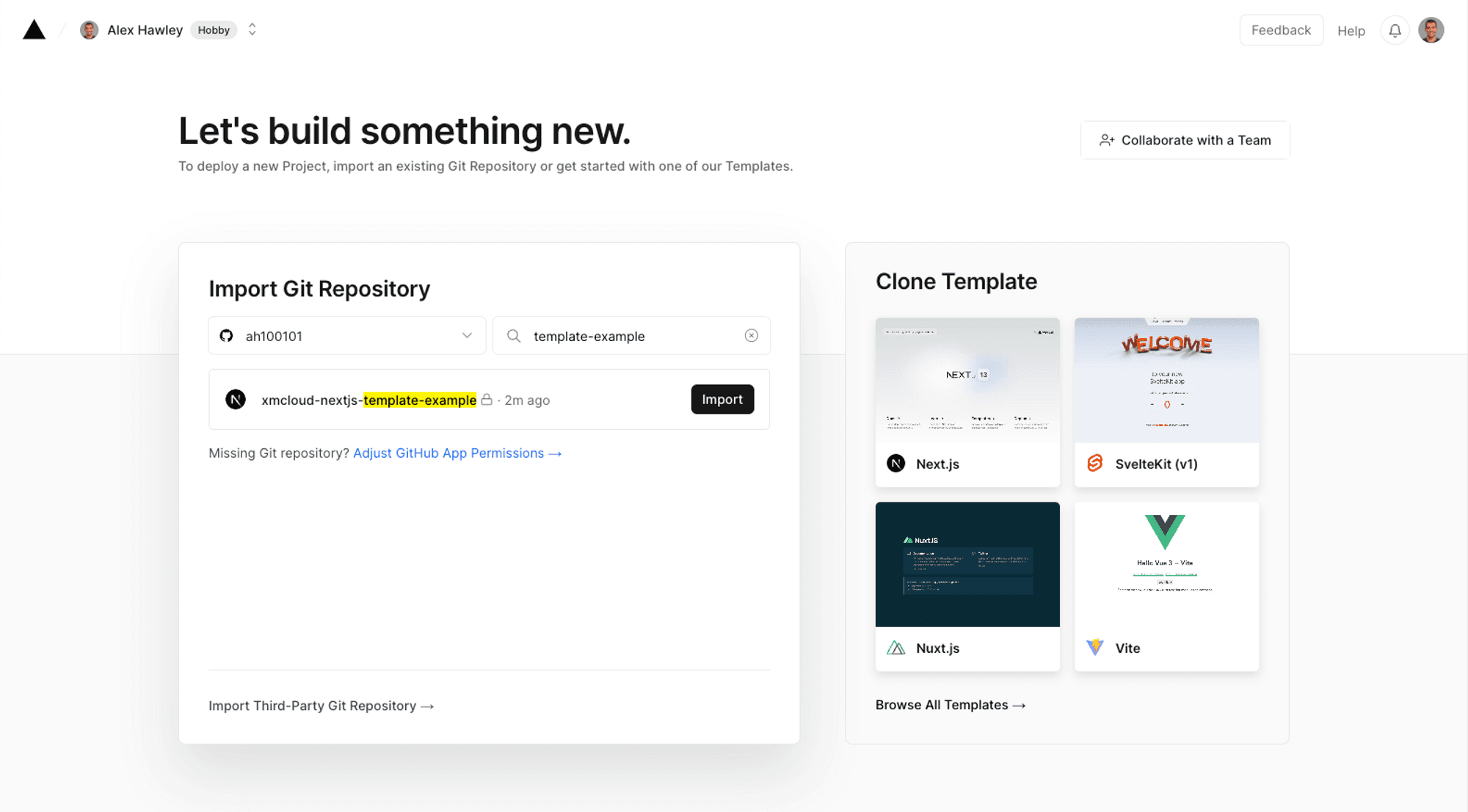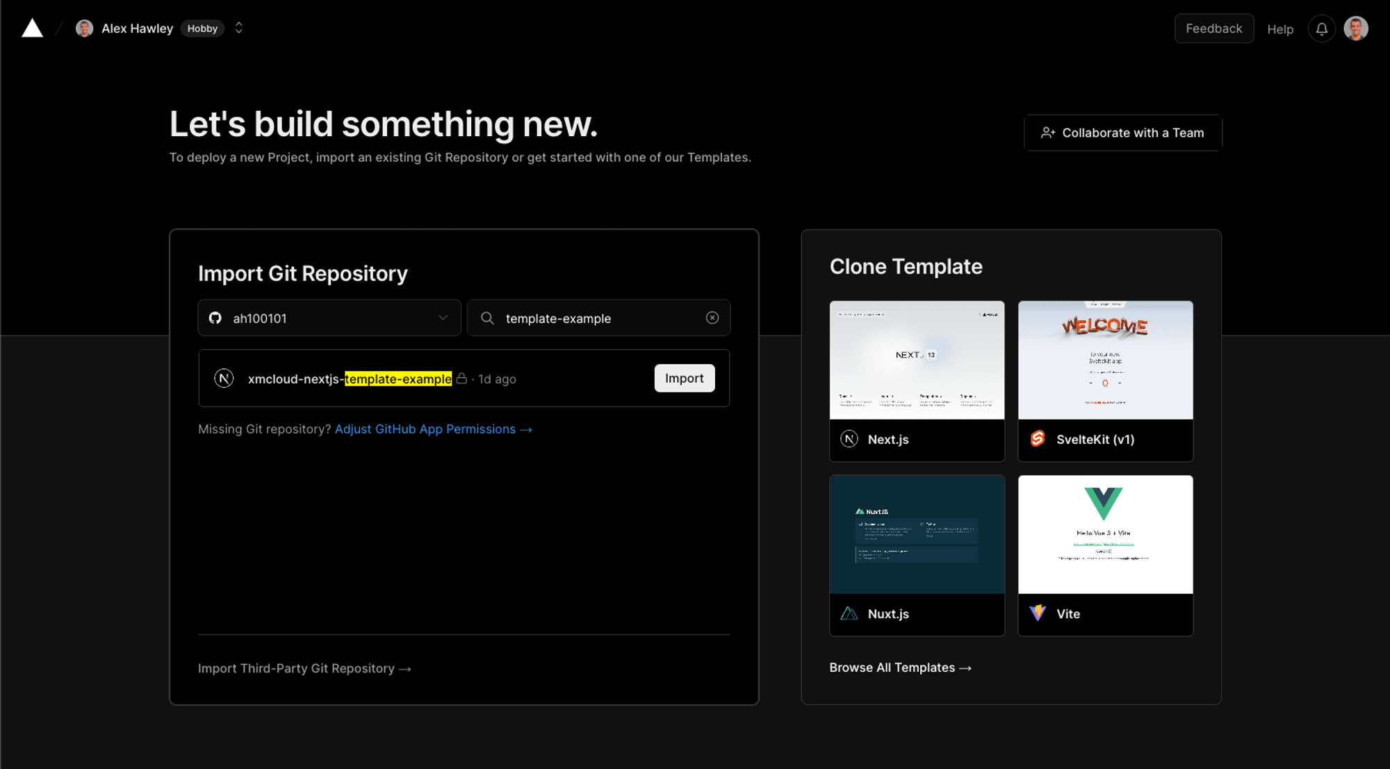 Log in to your Vercel account (or create one) and import your project into Vercel using the import flow.