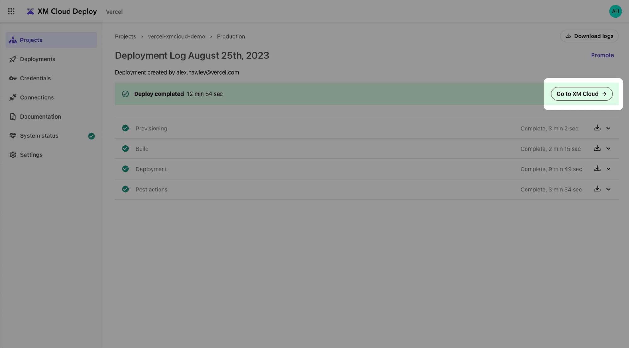 - When the deployment finishes, select Go to XM Cloud