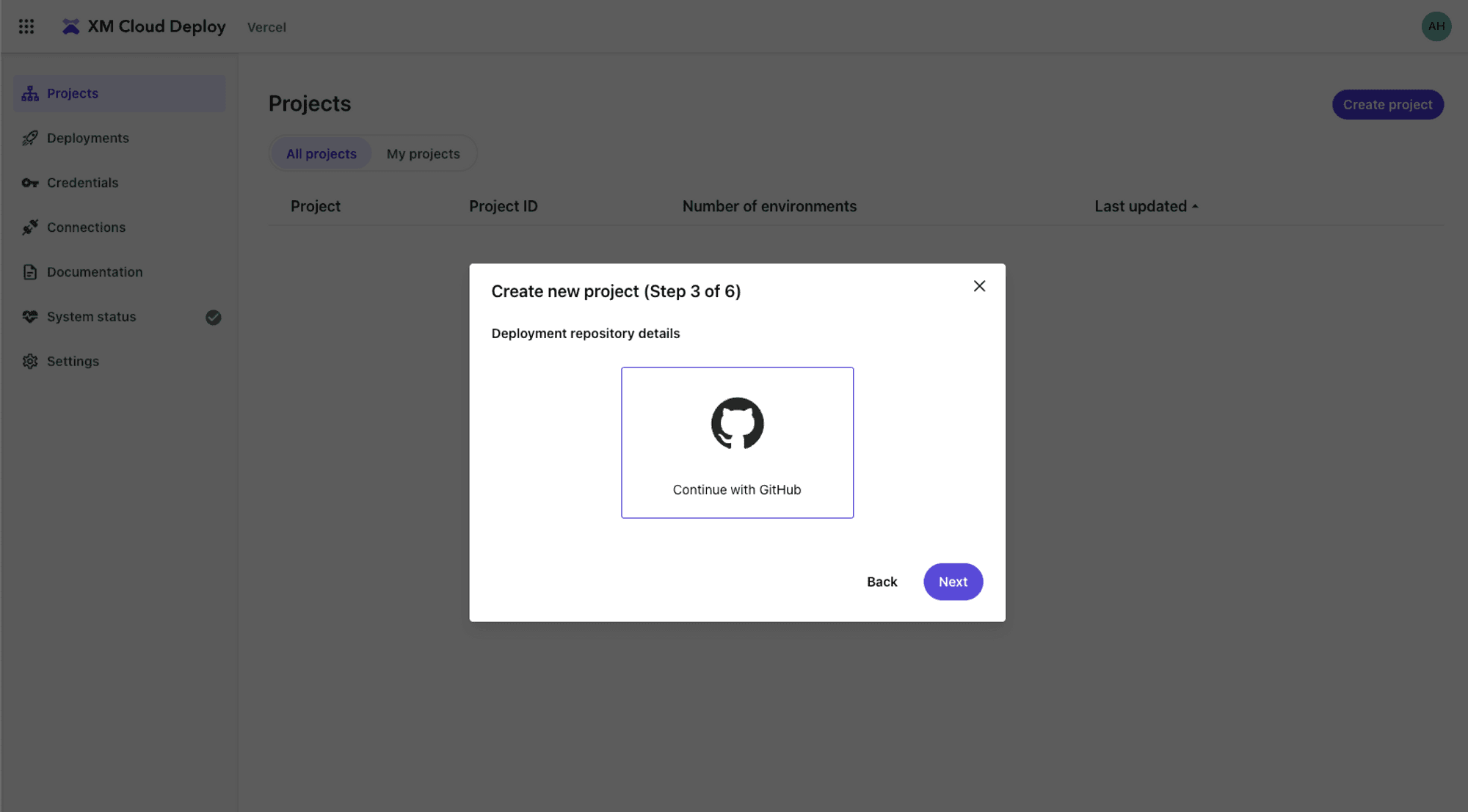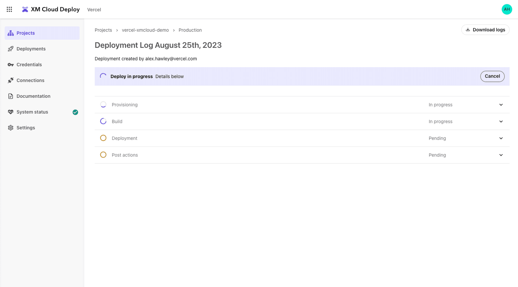 Log in to your XM Cloud Deploy app account.