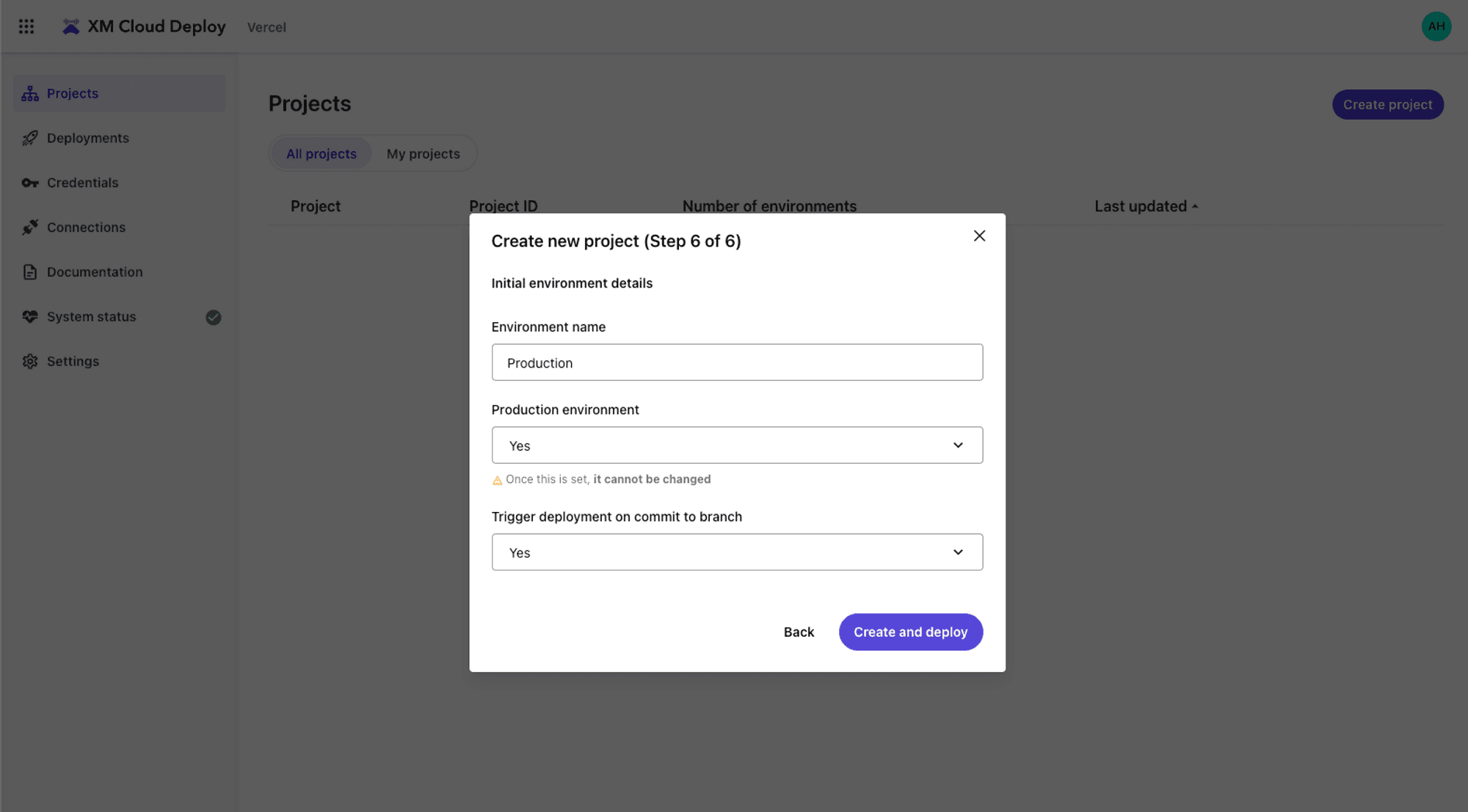 Select Create and deploy.