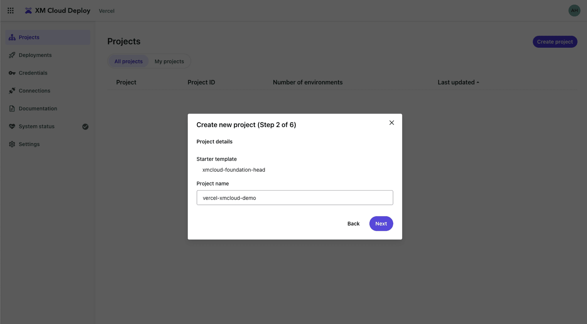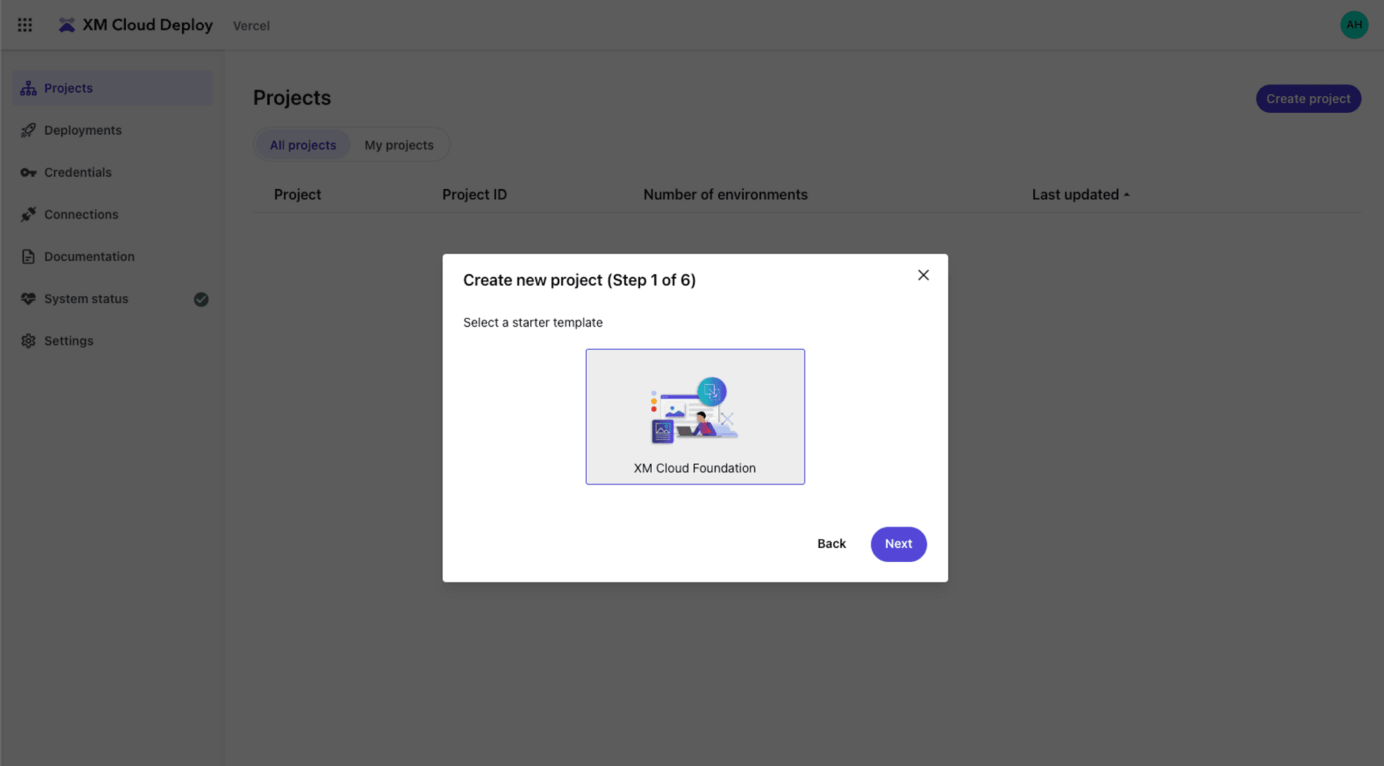 Select the XM Cloud Foundation starter template and select Next.
