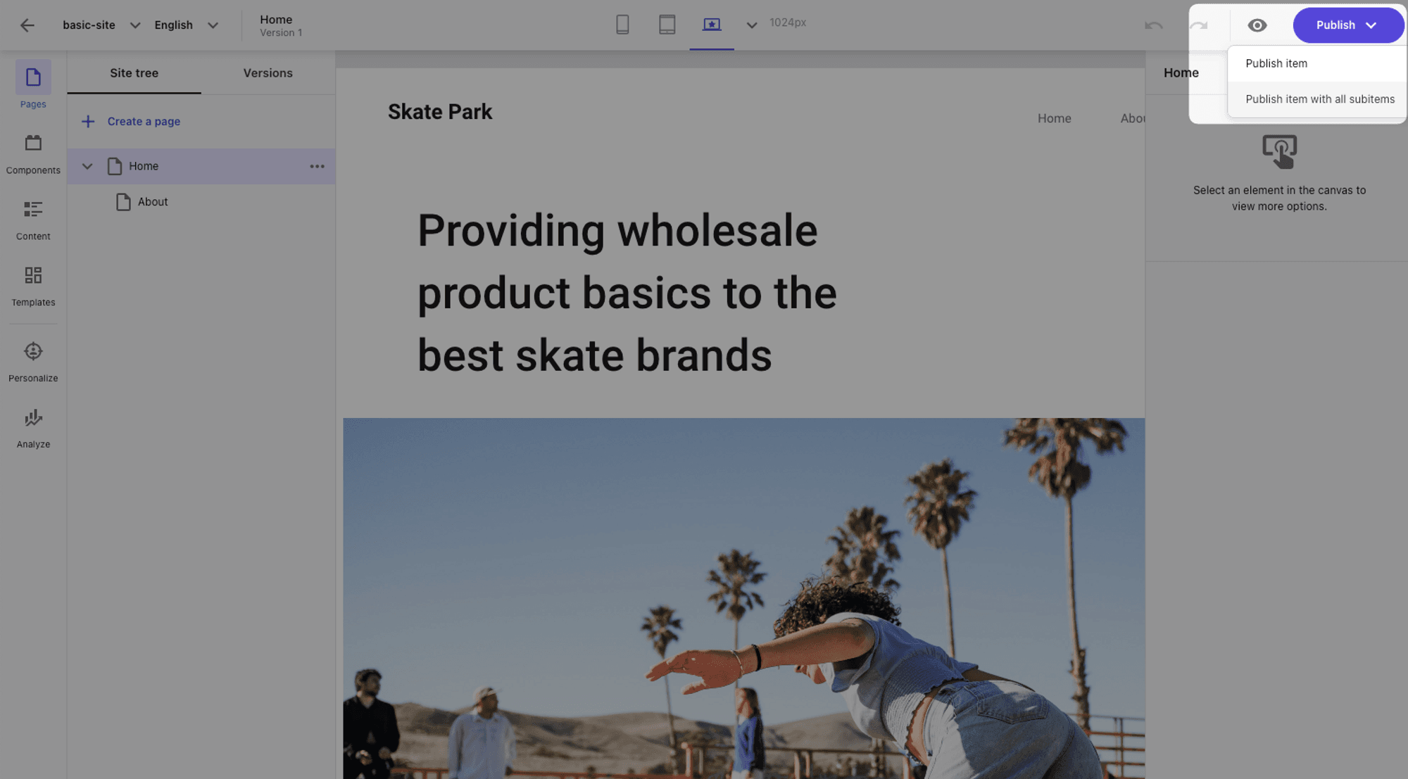 - Select Publish > Publish item with all sub-items