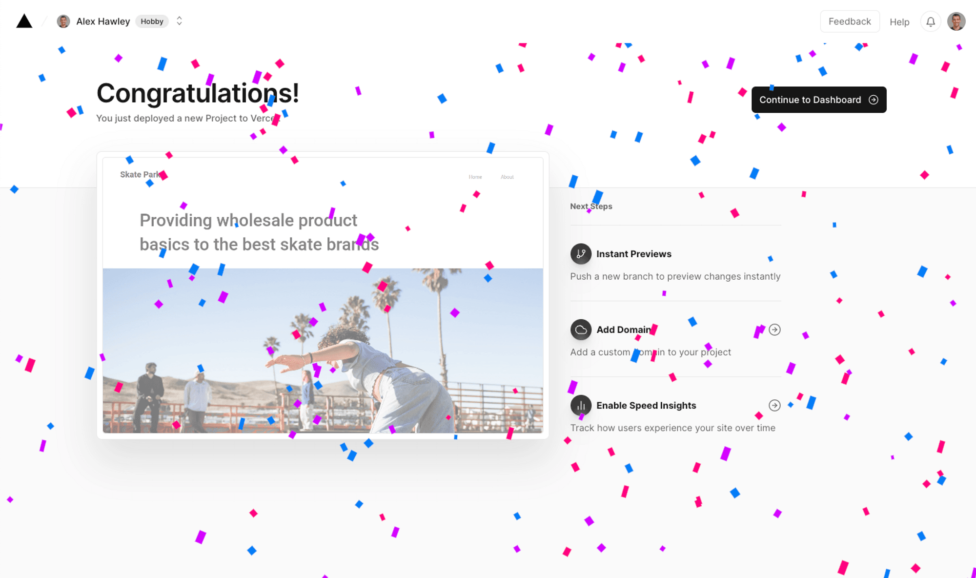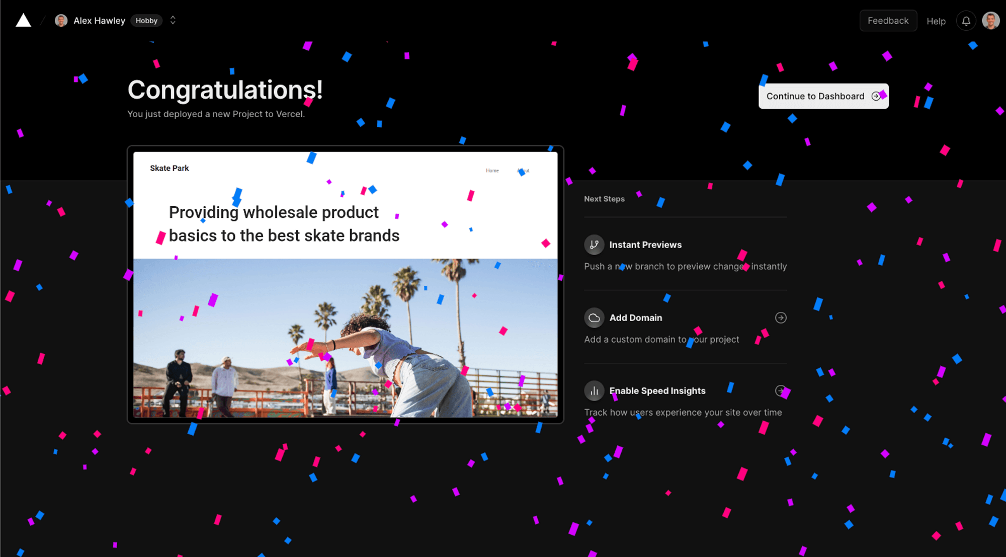 Select "Deploy" and your application will be live on Vercel!