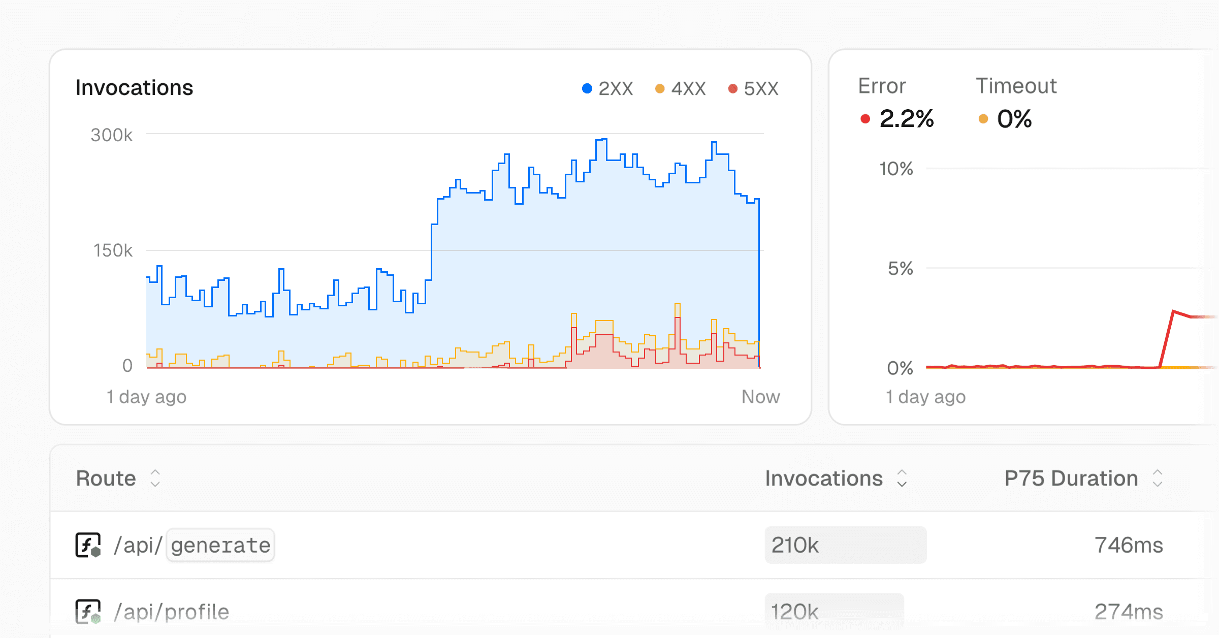 - The functions view will show you the performance of each route or function, including details about the function, latency, paths, and External APIs. Note that Latency and breakdown by path are only available for Observability Plus users.