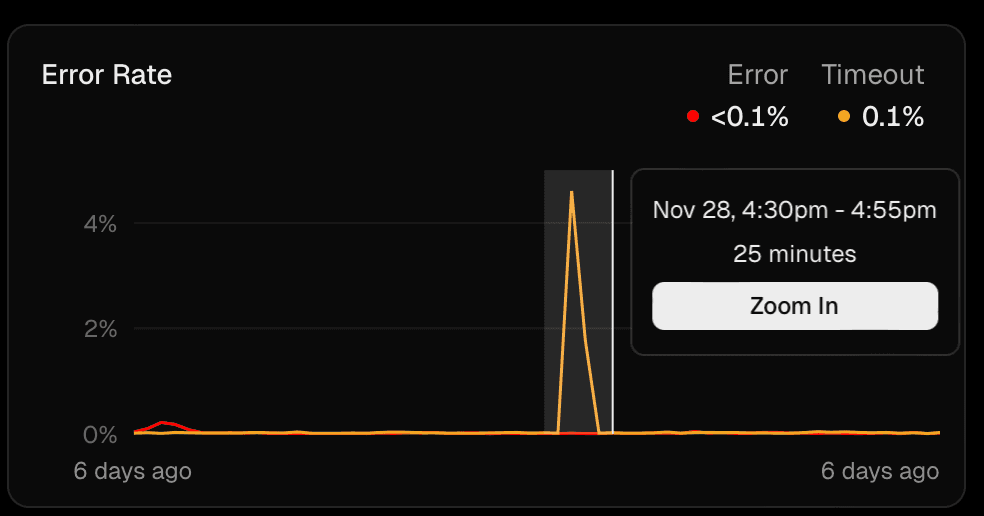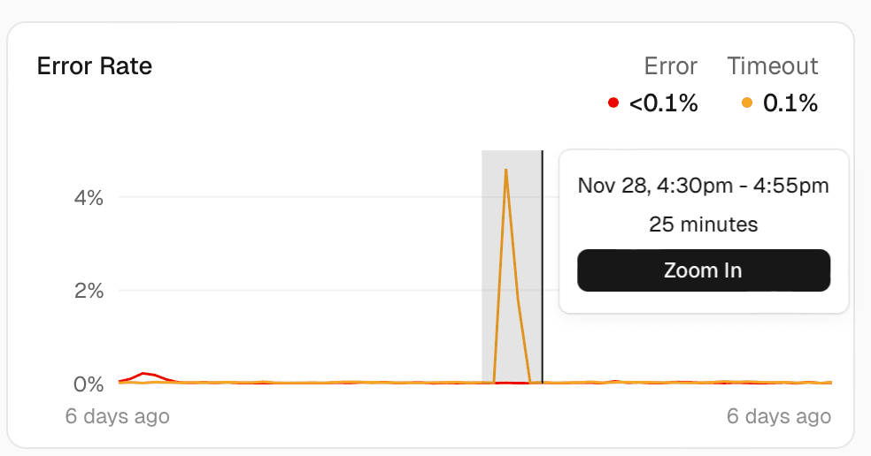 - Let's investigate our graphs in more detail, for example, Error Rate. Click and drag to select a period of time and press the Zoom In button.