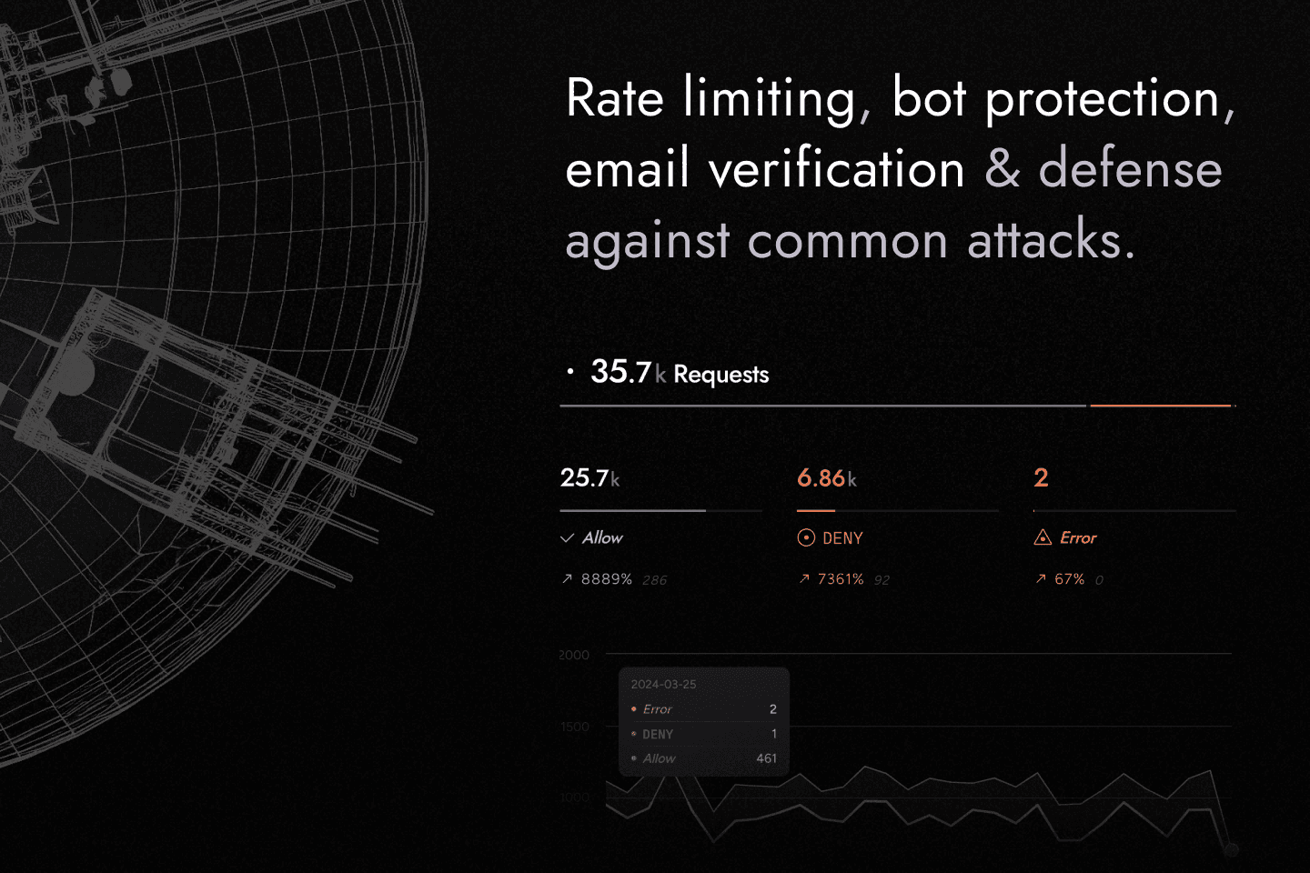 - Implement bot protection, rate limiting, email validation & more in just a few lines of code.