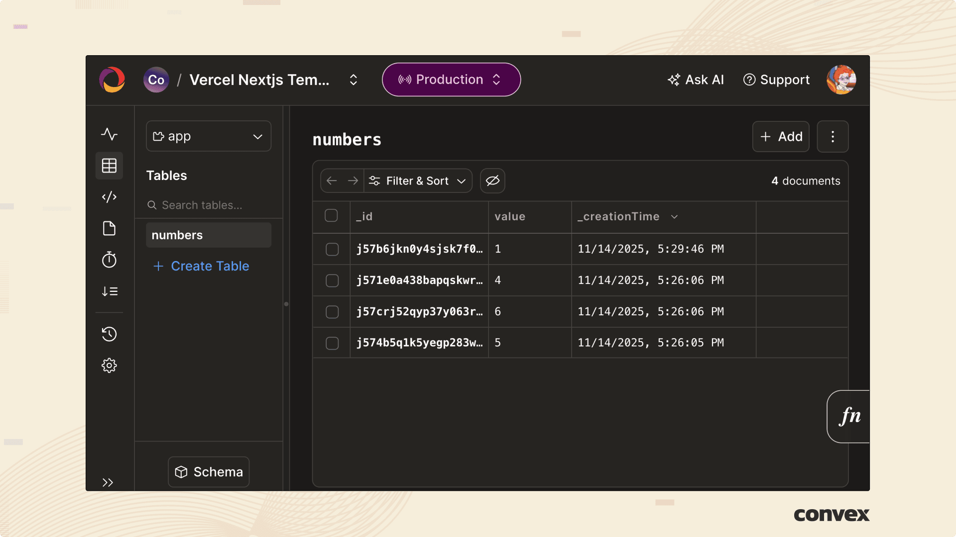 This integration allows seemlessly creating Convex database through Vercel and connecting your Convex deployments to your frontend.