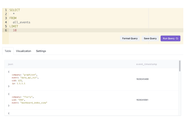 SELECT timestamp, JSONExtractString(json, 'message') as stdoutFROM logsWHERE JSONExtractString(json, 'message') LIKE '%ERROR%'LIMIT 10This integration offers additional features for Pro and Enterprise plans.
