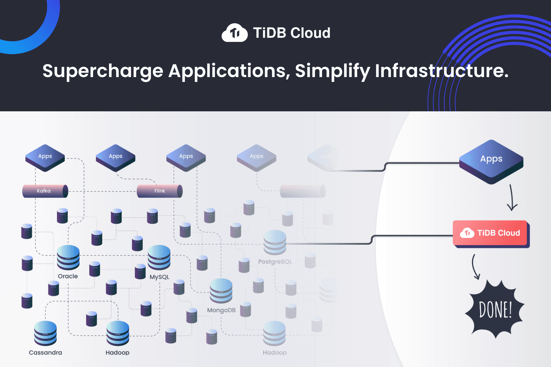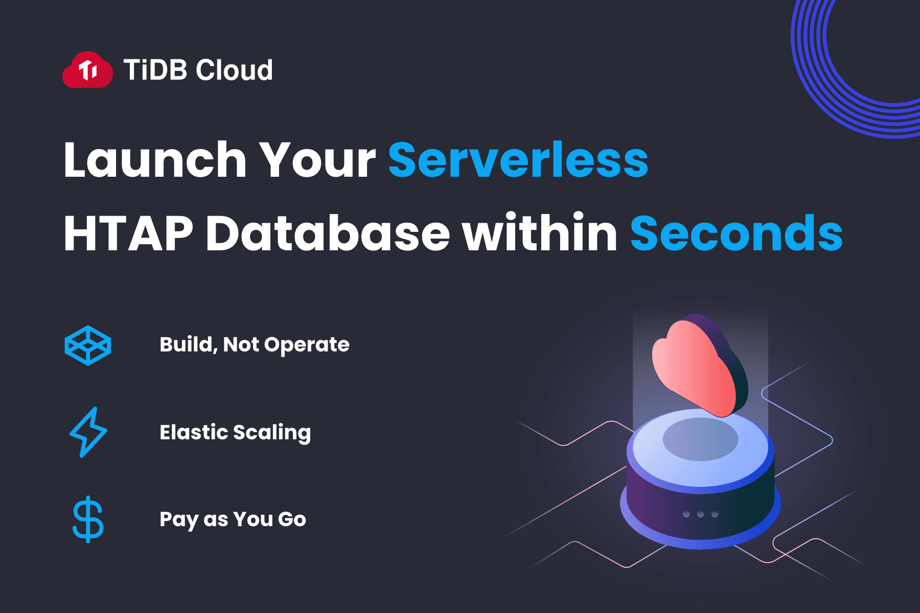 TiDB Cloud offers TiDB Serverless built for modern application development. TiDB Serverless is a fully-managed, autonomous DBaaS with split-second cluster provisioning and consumption-based pricing.